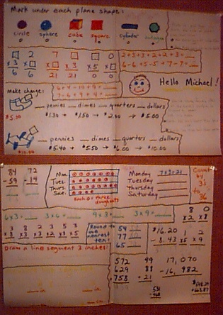 Michael to complete "Mom's Homemade Math Paper" each day, we had
