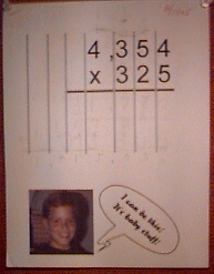 Now, that yellow strip of paper. I started Michael off with small multiplication