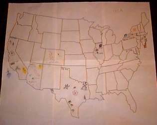 Before we started, I used our Print Artist to print out a map of the United States (sans Alaska and Hawaii for the time being). The map shows state boundaries only. We are also journalizing these travels. Each state is done in the same way:
