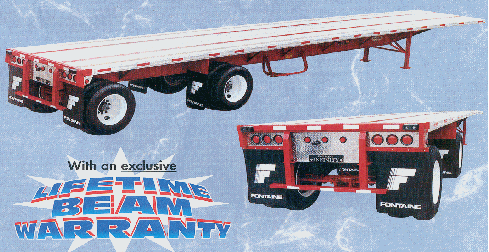 Model…………………."Infinity" Lightweight Steel/ Aluminum Composite Platform Floor……………………1 1/8" Apitong Crossmembers………….12" Centers-4" Jr. I-Beams Side Rails……………….5 3/4" Extruded Aluminum-Aluminum Stake Pockets-Double Pipe Spools & Rub rails Main Beams…………….36" Kingpin setting- 1/2" X 5" Top and Bottom (130K) Flanges--25" Deep Web Axles……………………(2) 5/8" Wall-Auto Slacks, WABCO 4S/2M ABS wired to auxiliary socket Suspension……………..Turner HT300-10'2" Spread-Electric Dump Valve on rear axle wired to center pin Hub & Drums…………..10 Hole Disc Hub Piloted W/Outboard Cast Drums -Long Studs Wheels………………….(8) 8.25 X 24.5 Steel Disc Tires…………………….(8) 11R24.5 14 Ply Bridgestone R196 Electrical………………..Trucklite Lights W/Center Turn Signals (1) Extra Pair Stop & Tail lights (2) Extra Pair Clearance Lights. Closed black grommets. Paint & Finish………….All Steel Painted Fontaine Black, No Undercoat Included Misc. Items: