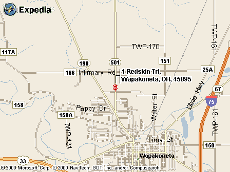 At thumb tack on map are flashing lights , turn right to reach high school, about a quarter of a mile on right.